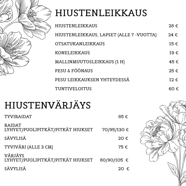 Hinnasto päivitetty 1.10.2025